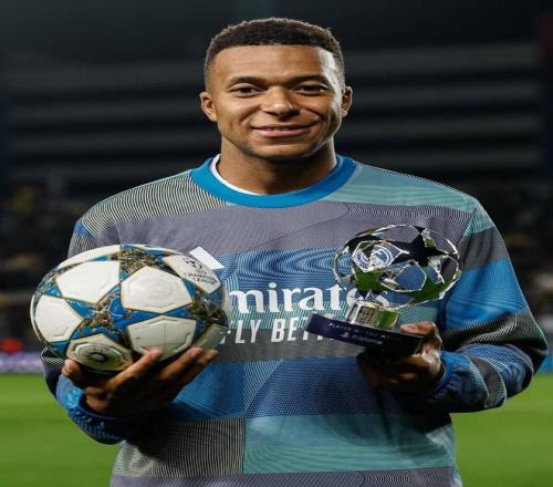 在與阿拉木圖凱拉特的歐冠比賽中上演帽子戲法後,皇馬前鋒姆巴佩在社交媒體曬出他雙手拿著一個比賽用球和全場最佳球員獎杯的照片。