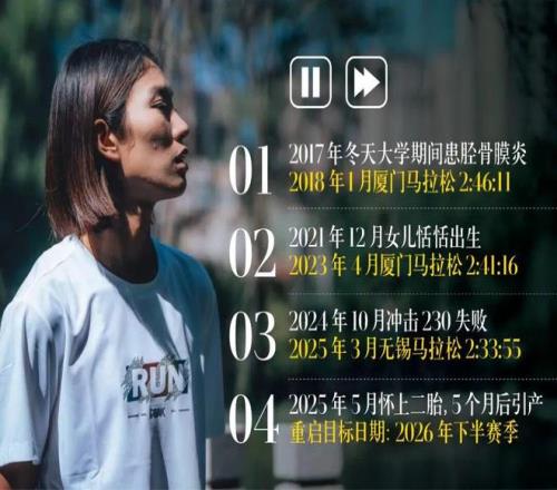 經曆2024年多次跑崩的波折後,焦安靜去年3月無錫跑出2小時33分55秒,創下全馬第二好戰績,隨後5月在蘭馬以2小時40分22秒贏得國內冠軍。在這樣的全盛時期,她發現自己懷上了第二個孩子。