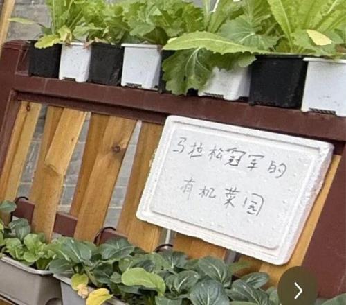 門口的小菜園被命名為“馬拉鬆冠軍的有機菜園”