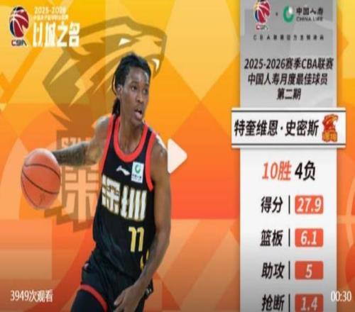 CBA第二期月最佳球員還是深圳隊球員,外援特奎維恩-史密斯在第10-23輪比賽中場均出戰27分鍾,可以拿到27.9分6.1個籃板5.0次助攻和1.4次搶斷,這期間他三分球命中率高達42.1%,場均可以命中3.6記三分球。本賽季至今23場比賽,史密斯有21場比賽得分上雙,其中有7場得分30+,3場得分40+,單場最高得分45分。史密斯今年才23歲,深圳隊這是又挖到寶了,如果他不主動要求離開大概率可以像薩林傑那樣成為深圳隊的重建基石。