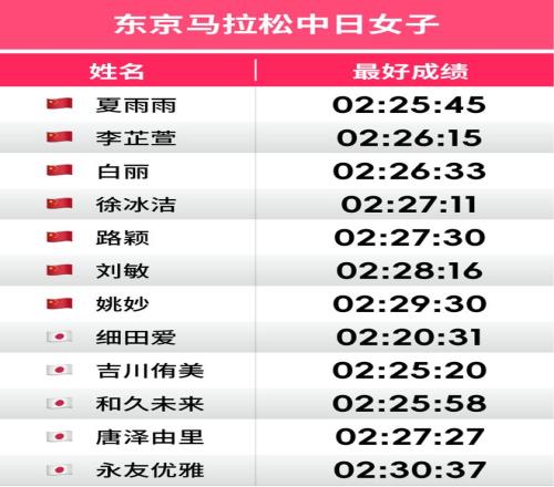 東京馬拉鬆中國七劍客七仙女會師大滿貫,誰能PB成關注點