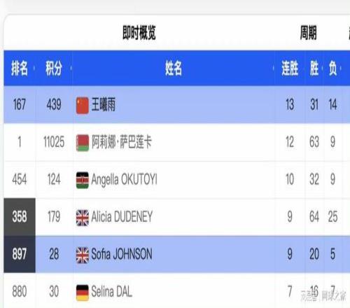 正是因為憑借這樣不俗的表現,當王曦雨在六安100k賽事挺進四強後,有細心的球迷和網友突然發現,王曦雨一不小心就超越了本賽季迄今為止薩巴倫卡的一項紀錄,以13連勝躍在了白俄羅斯姑娘的12連勝前麵。王左姑娘用時間最短,僅用了兩周多,效率奇高。